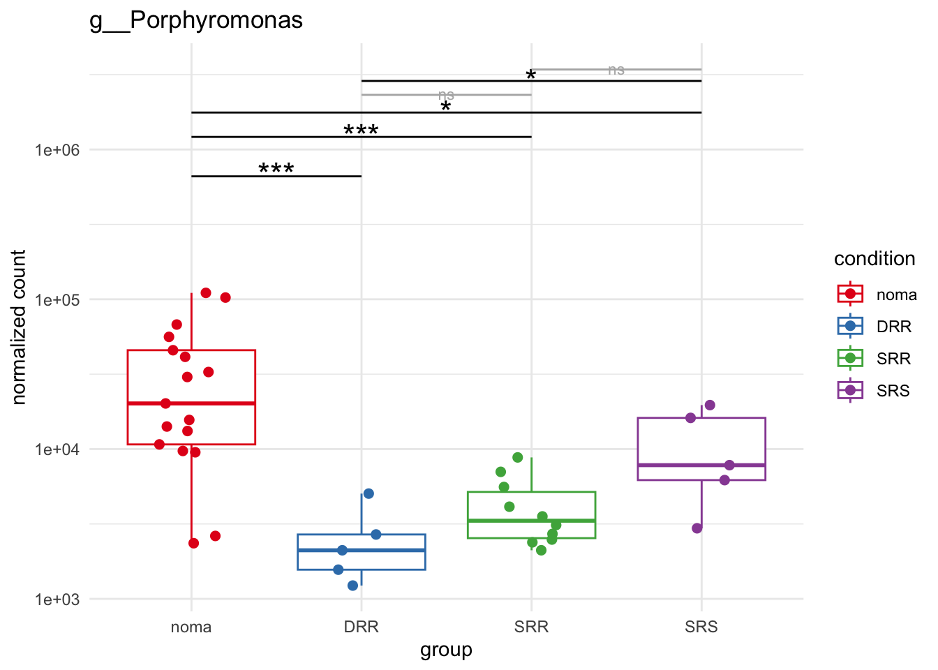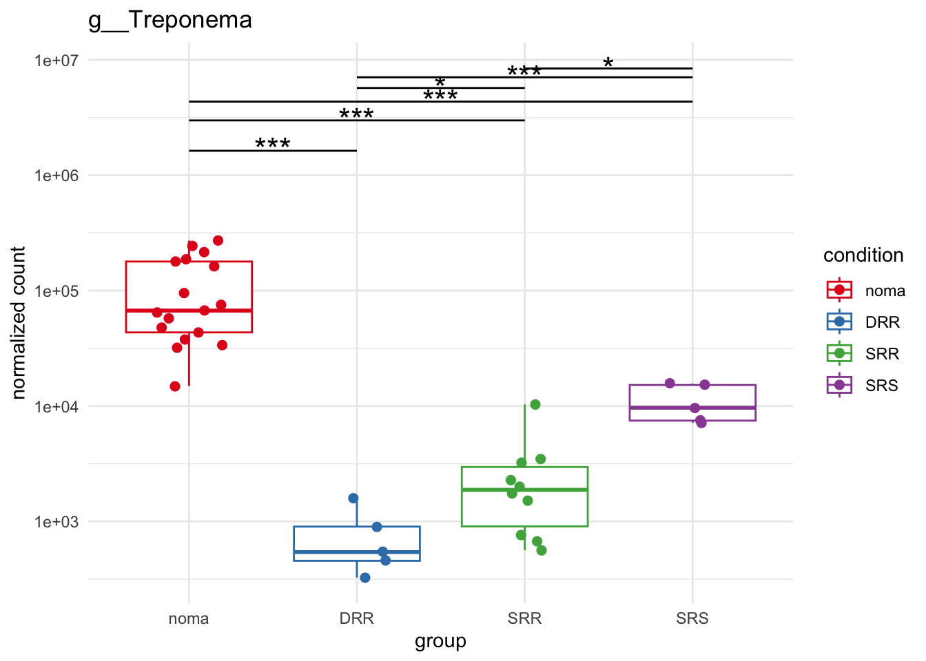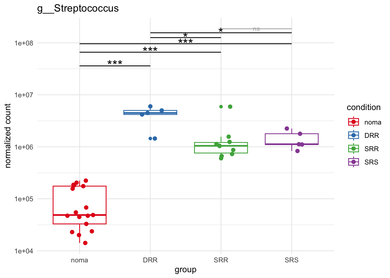 This analysis was used in the short-read (Illumina) taxonomic based metagenomic analysis of noma vs healthy human saliva samples in R posted as a preprint on bioRxiv: