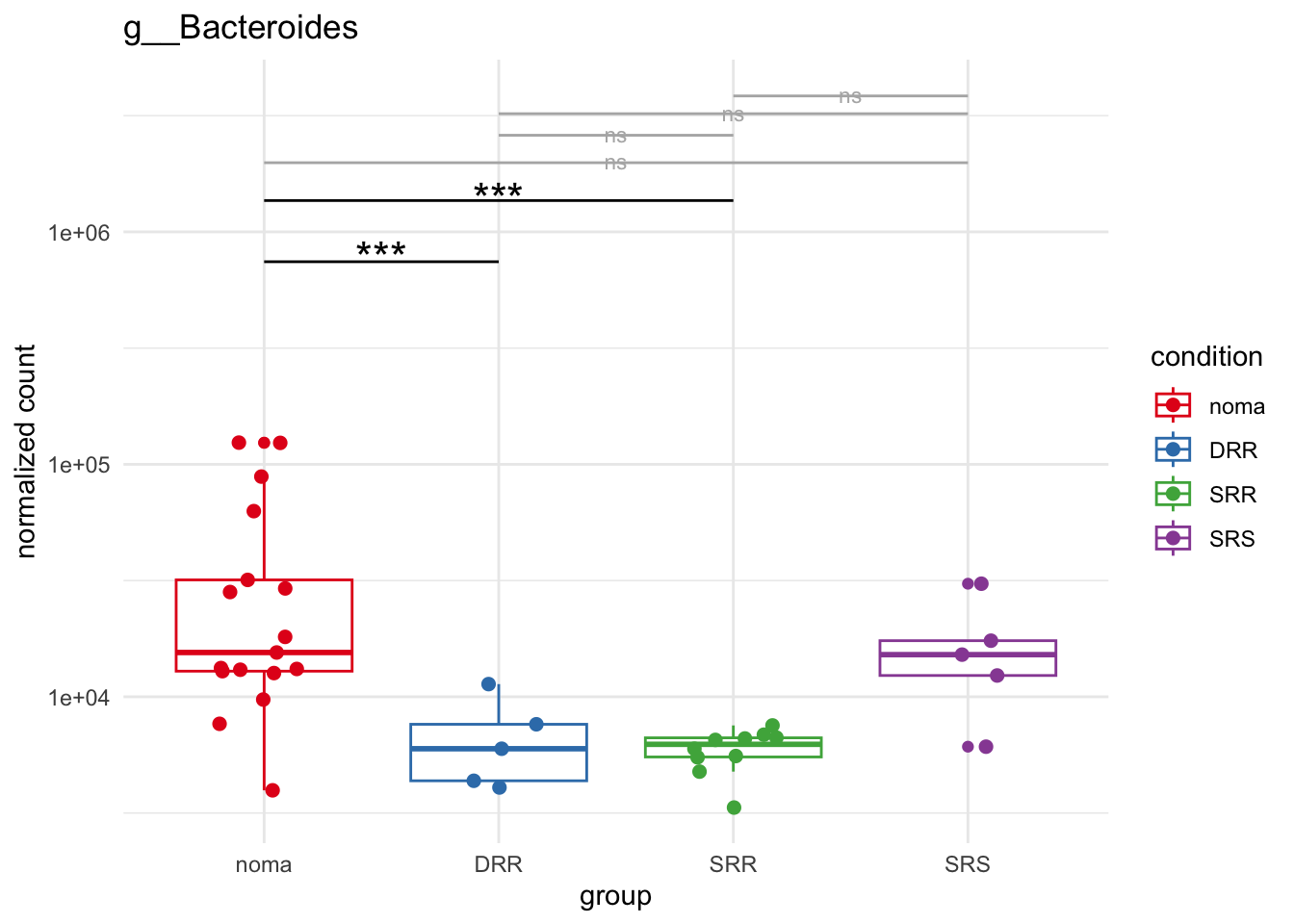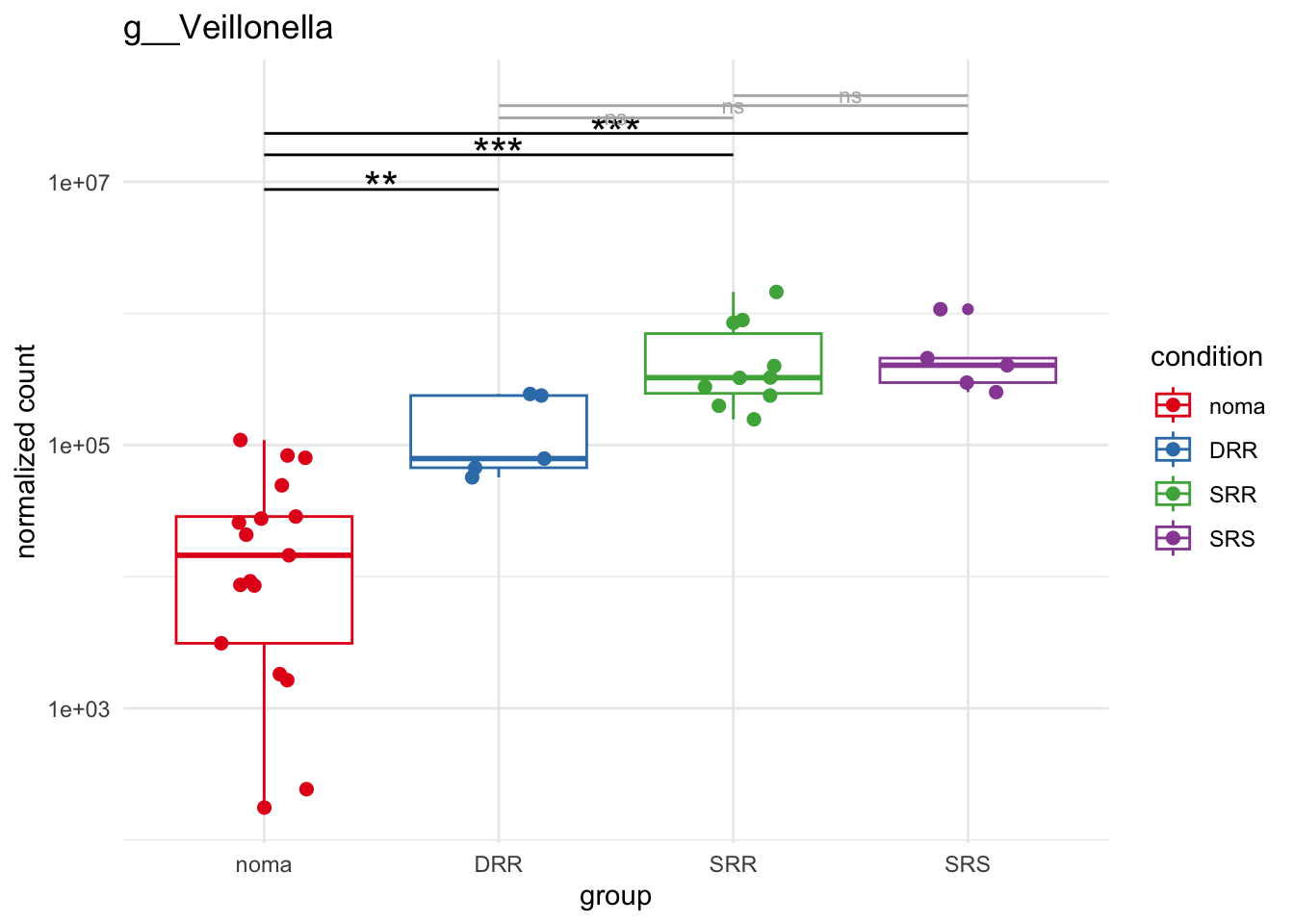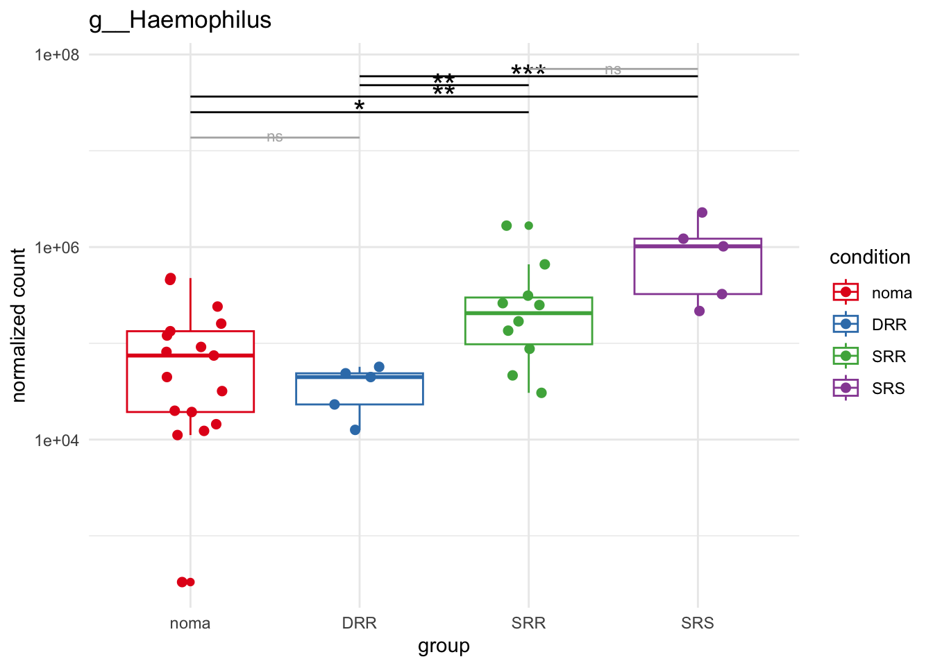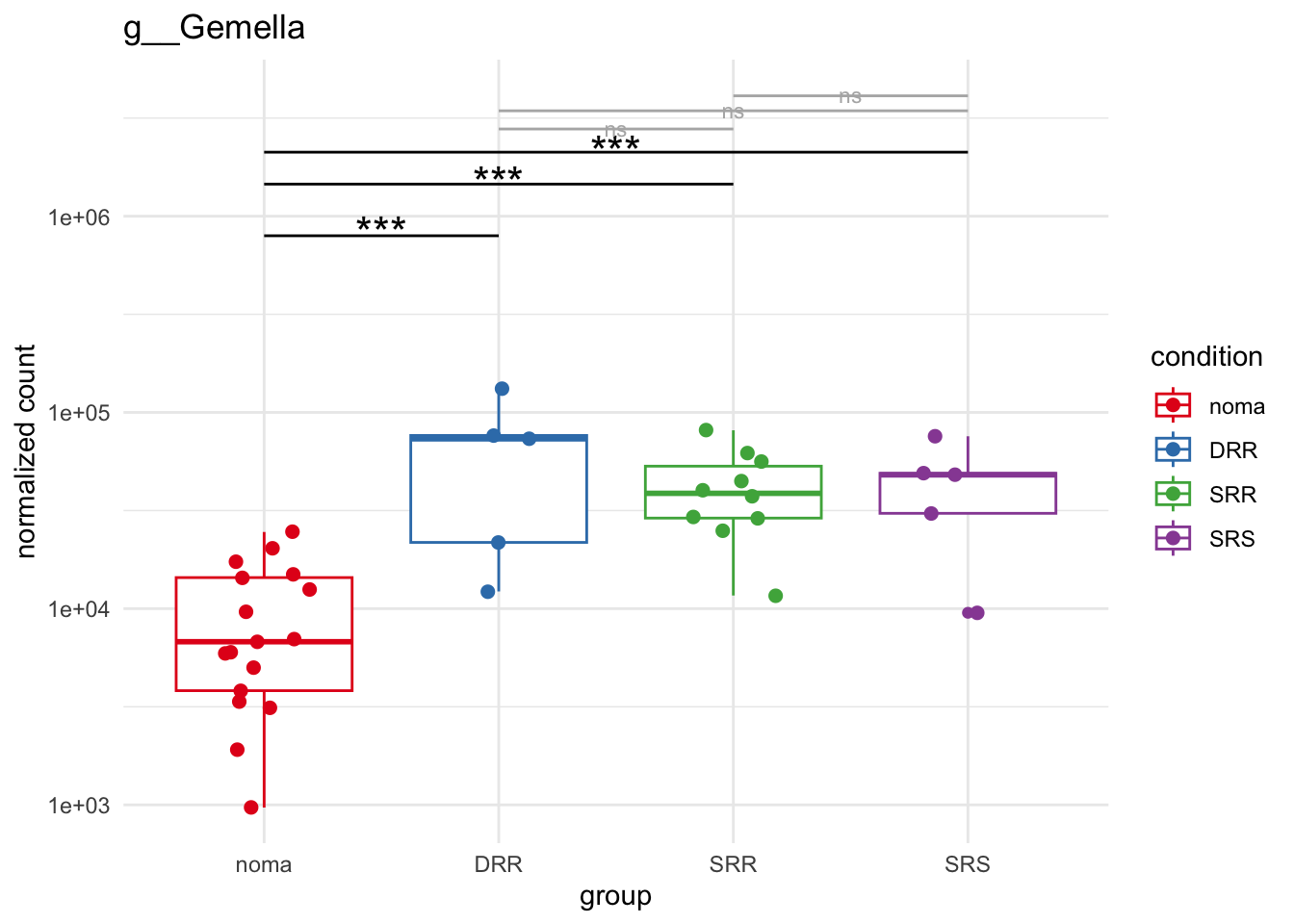 This analysis was used in the short-read (Illumina) taxonomic based metagenomic analysis of noma vs healthy human saliva samples in R posted as a preprint on bioRxiv: