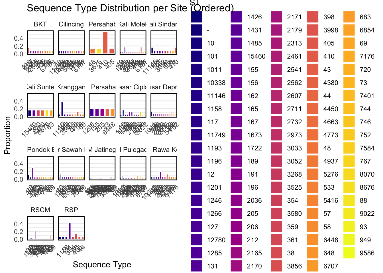labs(title = "Sequence Type Distribution per Site (Ordered)",