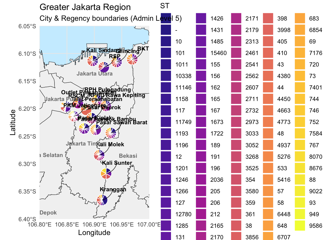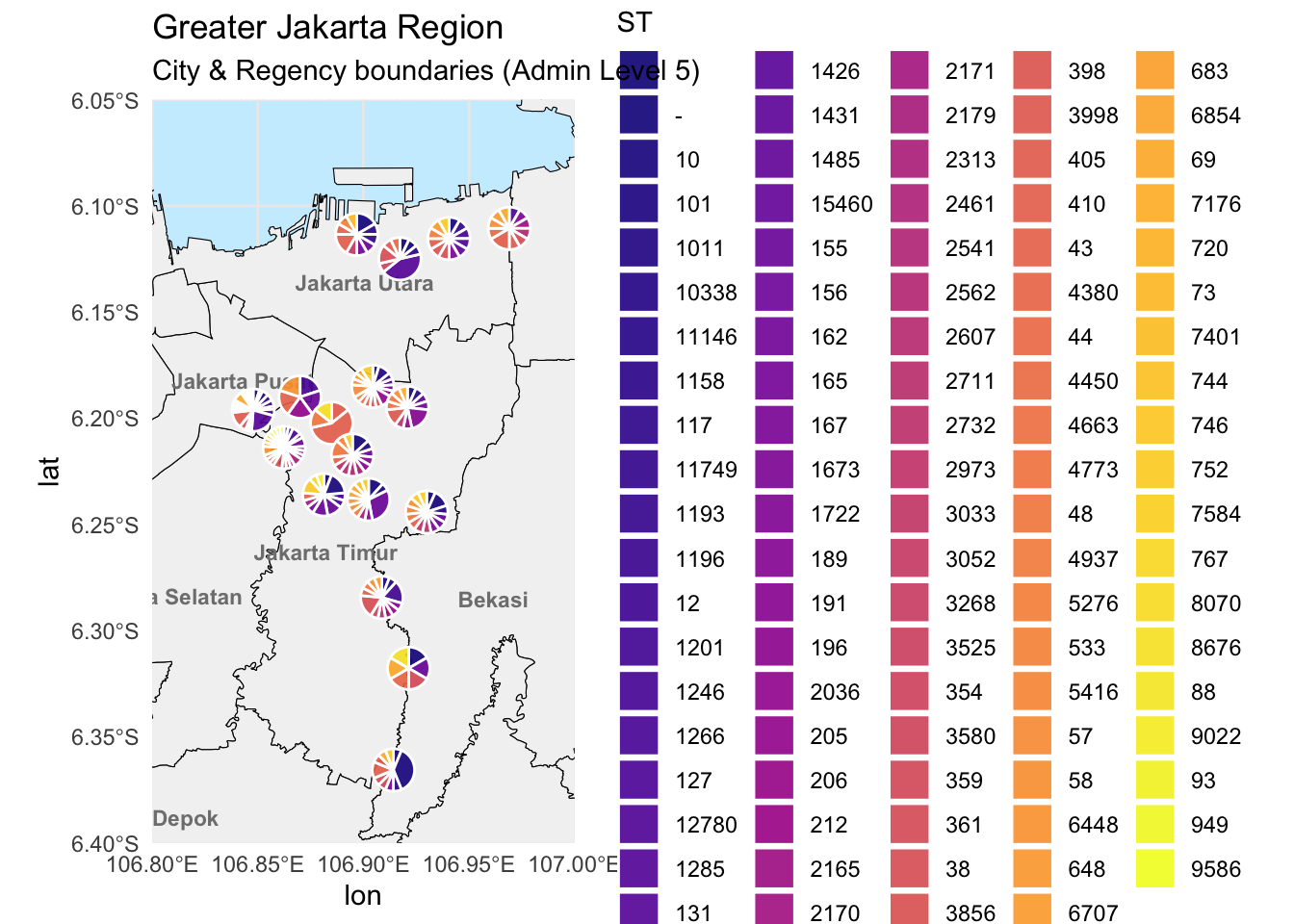 Now add the pie charts to this plot, and also reduce the axes so it concentartes on Jakarta city